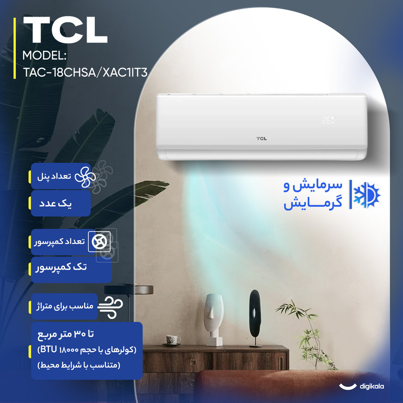 کولر گازی اسپلیت دیواری 18000 اینورتر تی سی ال مدل TAC-18CHSA/XAC1IT3