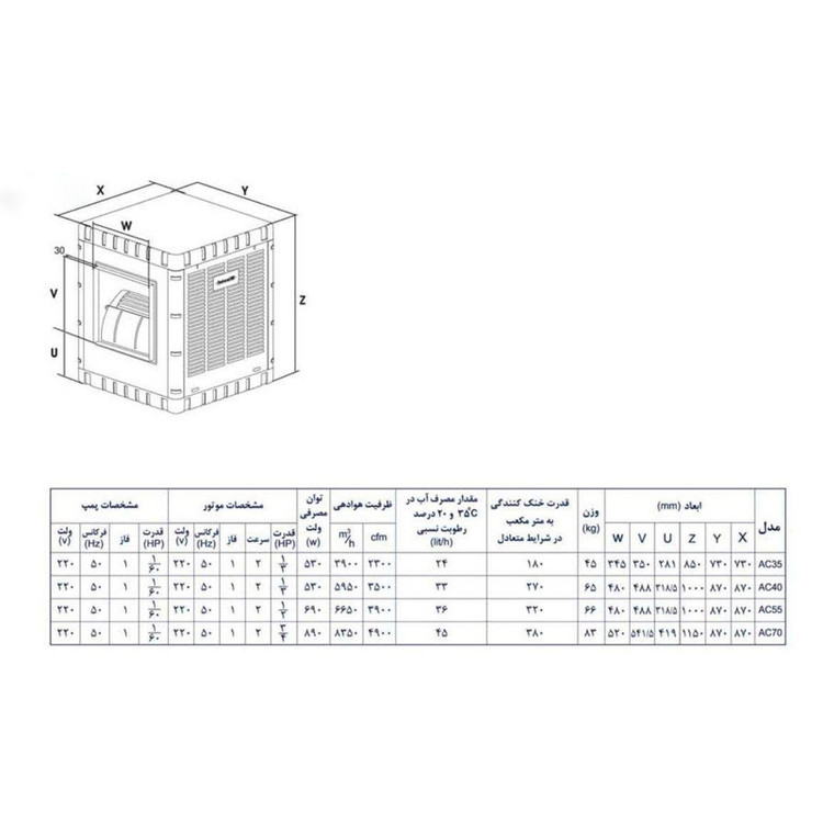 حجم خنککنندگی: 5500 CFM
