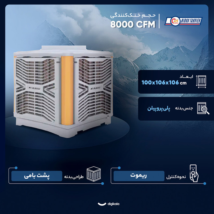 شدت جریان 2.2 آمپر / فیلتر دو مرحلهای / موتور BLDC (دارکت درایو) / پنل ترموستاتیک و ریموت رادیویی / پایه قابل تنظیم