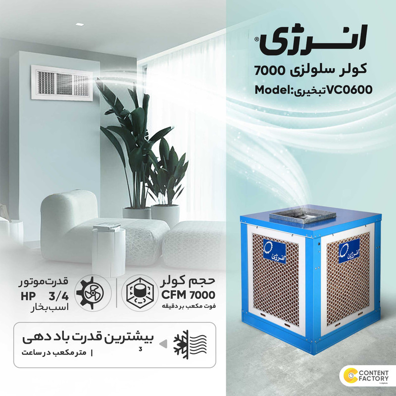 سیستم سرمایش تبخیری / کنترل ترموستاتیک ، تایمر و ریموت کنترل / خود ایستایی پد سلولزی در مقایسه با پوشال و ثبات راندمان خنکی / شدت جریان 4.2 آمپر / ارتفاع تشتک تا 10 سانتیمتر / حداکثر طول کانال تا 12 متر