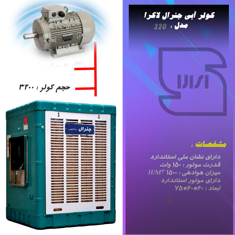 دارای برند رسمی ثبت شده دارای نشان استاندارد ملی ایران حجم کولر : 3200 دارای پمپ و موتور استاندارد